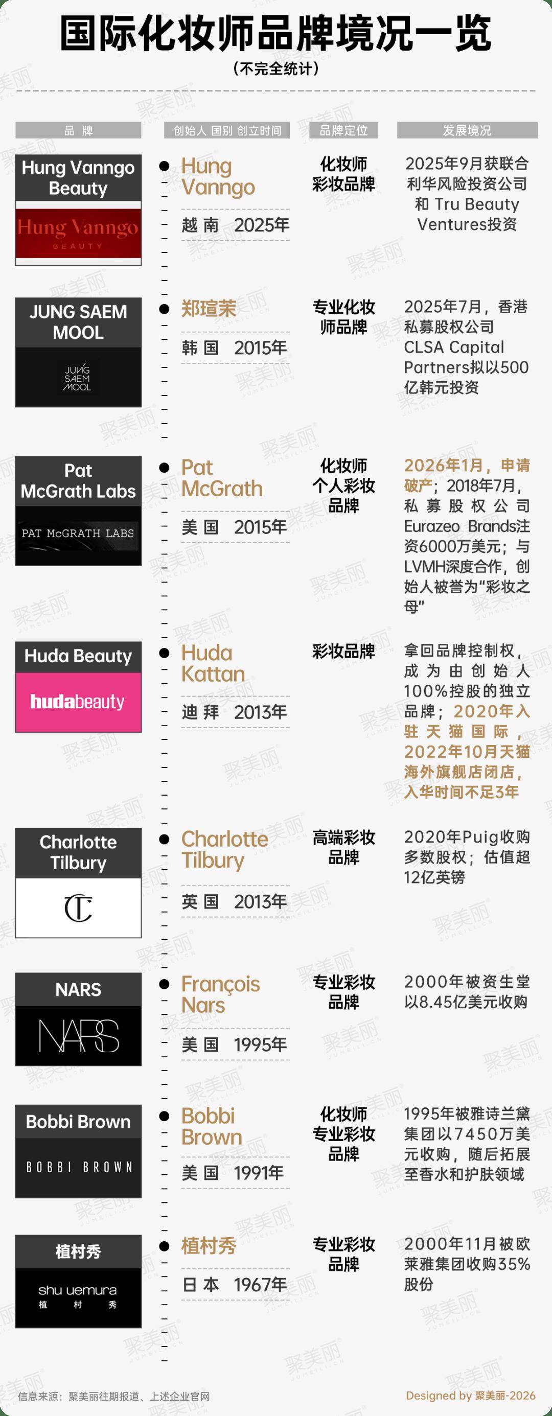 聚焦至化妆师品牌这一细分类目,可以发现,有获得欧莱雅、联合利华等美妆巨头青睐,获得投融资且在持续发展的;也有创始人拿回控制权,成为独立品牌后,却在华闭店的案例。