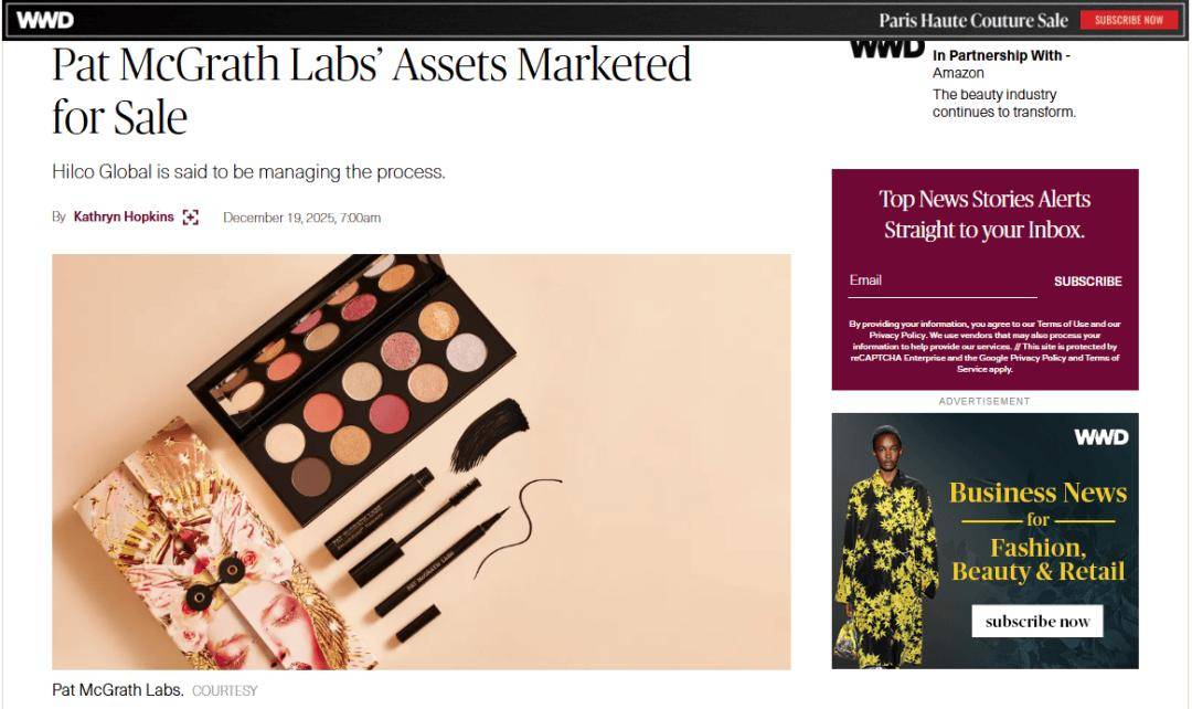若将时间线往前拉,可以发现,Pat McGrath Labs并非直接走的申请破产程序,更早之前(2025年12月),据WWD等外媒相关报道显示,其还实施了品牌出售拍卖等行动。